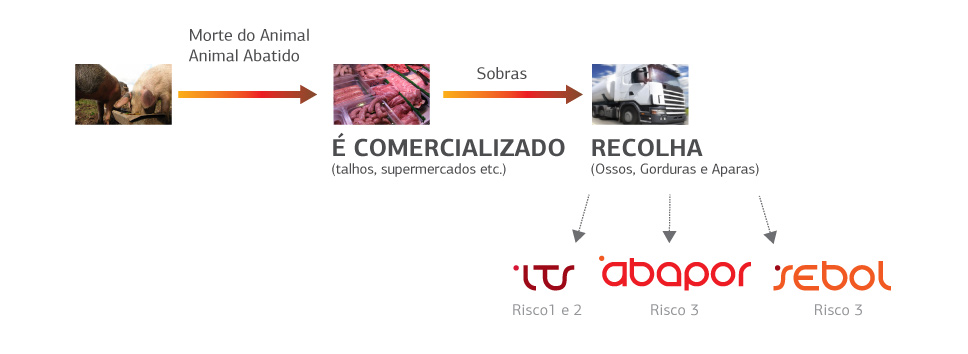Por sua vez para a recolha, transporte, triagem e desembalamento de subprodutos cárnicos ou de pescado, que são recolhidos em supermercados e grandes superfícies, a Abapor realiza o seu encaminhamento quer para a Sebol quer para a ITS de acordo com o destino do produto seja para eliminação seja para aproveitamento de forma sustentada, segura e eficaz.